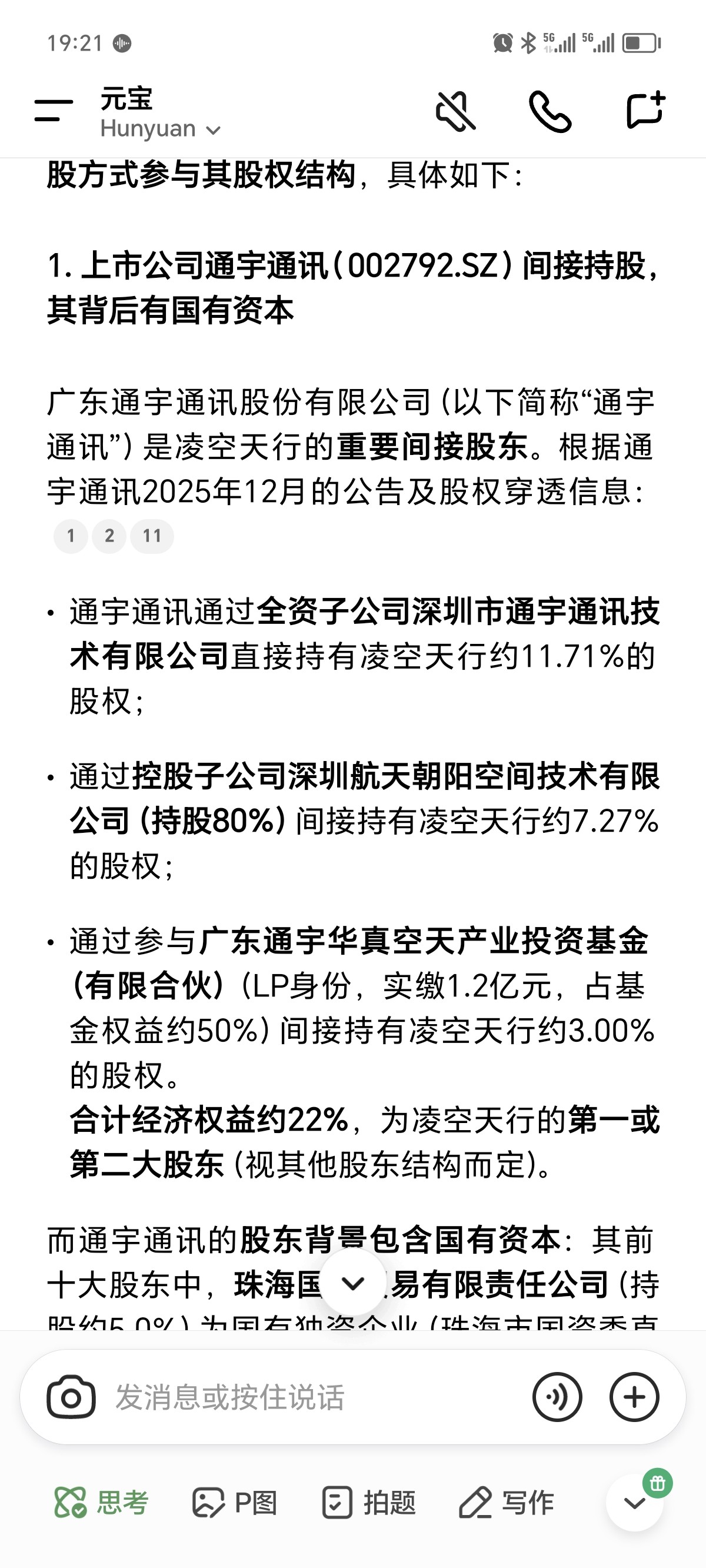 $通宇通讯(SZ002792)$  该公司占凌空天行20%多的股份。妥妥的前三大股东