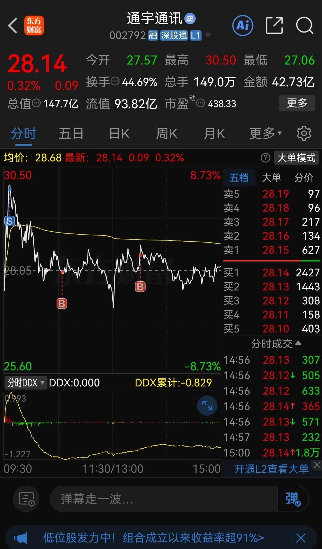 $通宇通讯(SZ002792)$ 新一,稳住,今天试了下,砸盘的已经没了,老夫挺你。明天启动反包