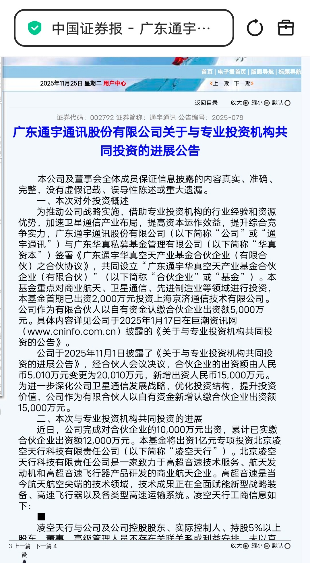 通宇通讯旗下基金出资1亿元投资凌空天行,制造高超音速水泥导弹