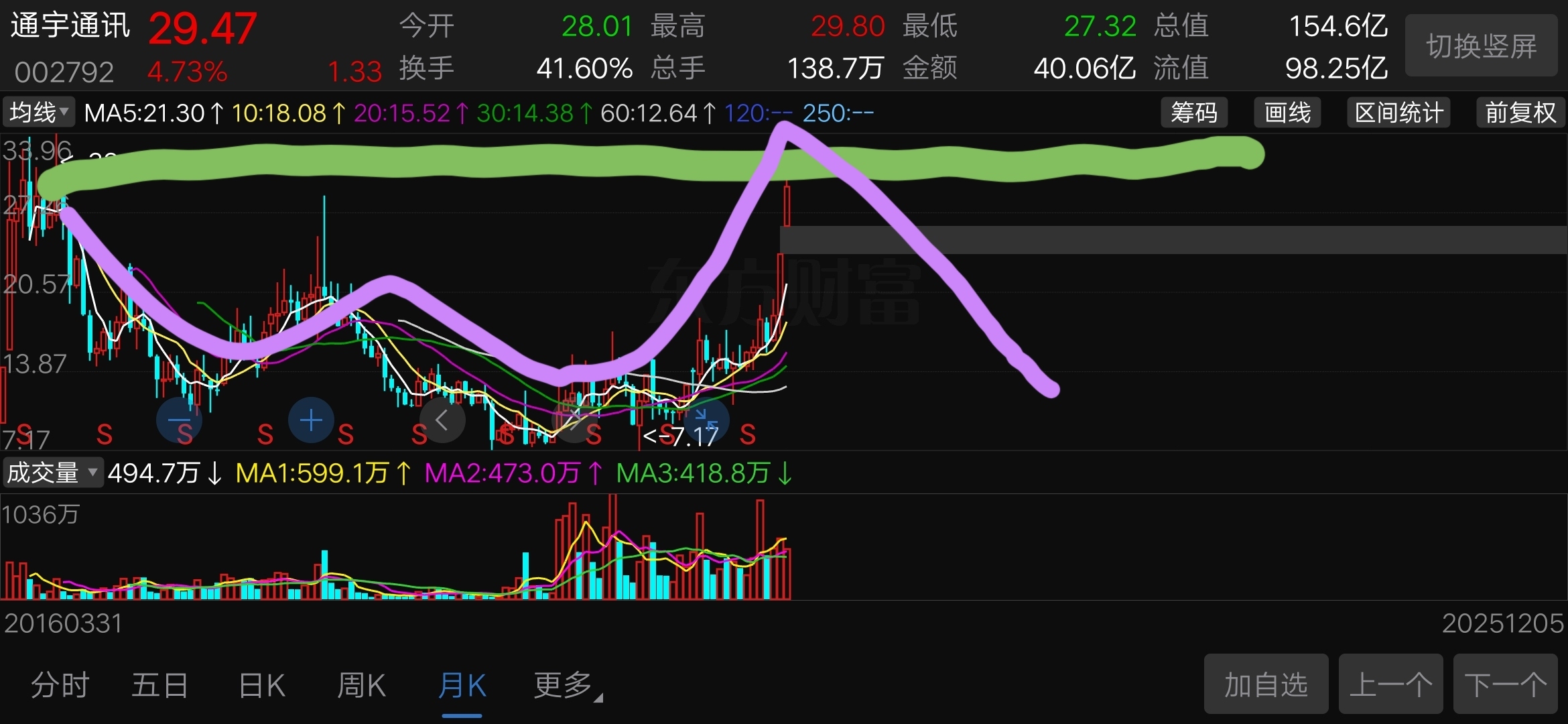$通宇通讯(SZ002792)$ 29-33.9区间做头赶紧跑,不要接盘接盘,低位各种打破周期各种人为操作打压股价片筹码不带你玩,拉一字板炒高还想片接盘?全是量化把戏,监空你们账户操盘,这种市没玩头没玩头,散户退出历史舞台,让它们自己嗨