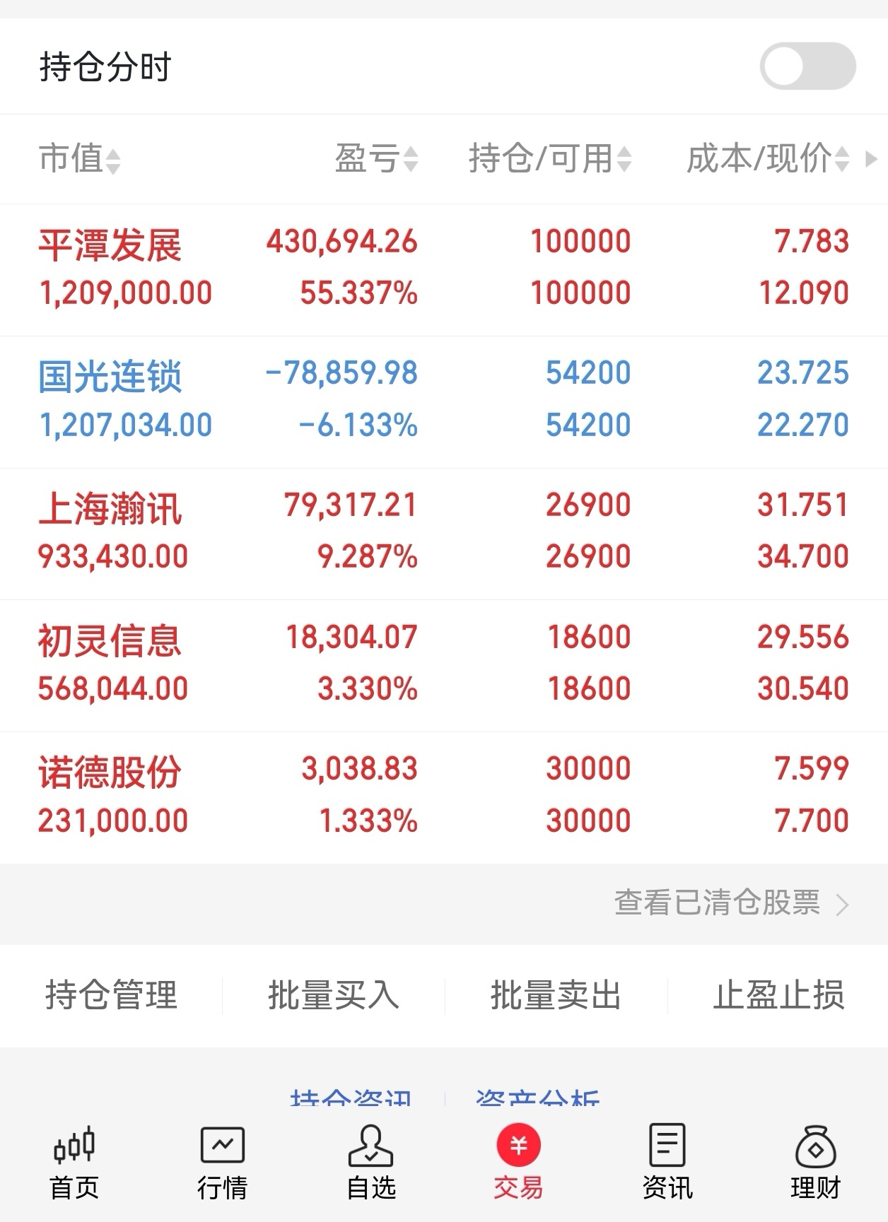 目前持仓:平潭发展!上周减仓了!这周到目标价就清!