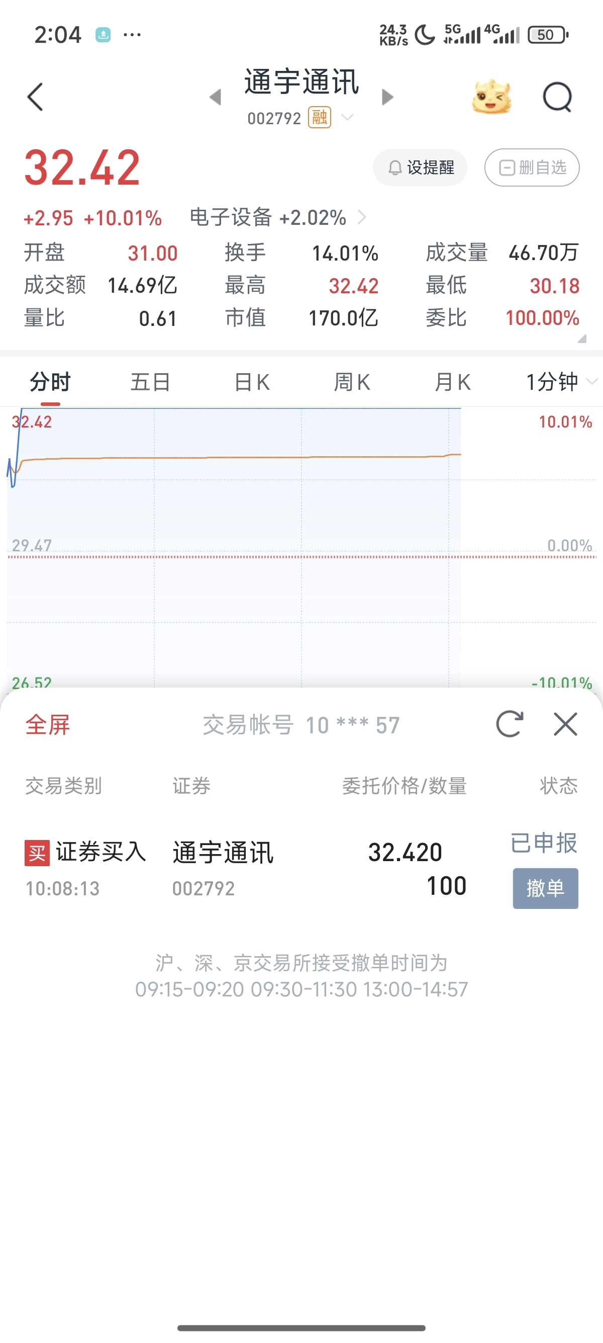 $通宇通讯(SZ002792)$ 我十点挂的一手买单还没排进去,空苟都在意银啥呢
