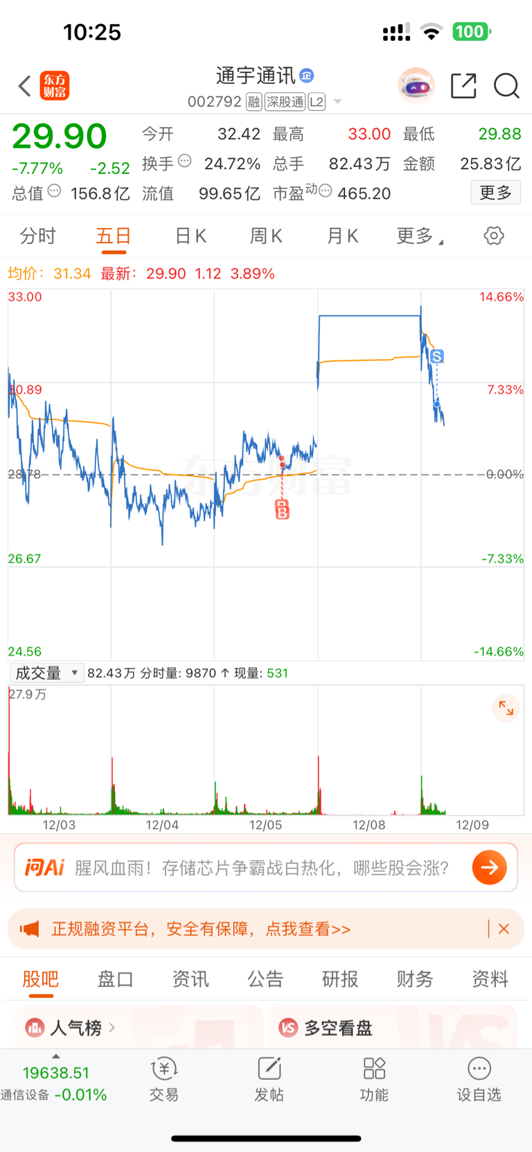 $通宇通讯(SZ002792)$ 早上拉红的时候猜到今天会是这样下跌,32.93都准备卖了,但还是忧郁不绝不愿意点确定,最后看着他一路下跌,可惜了