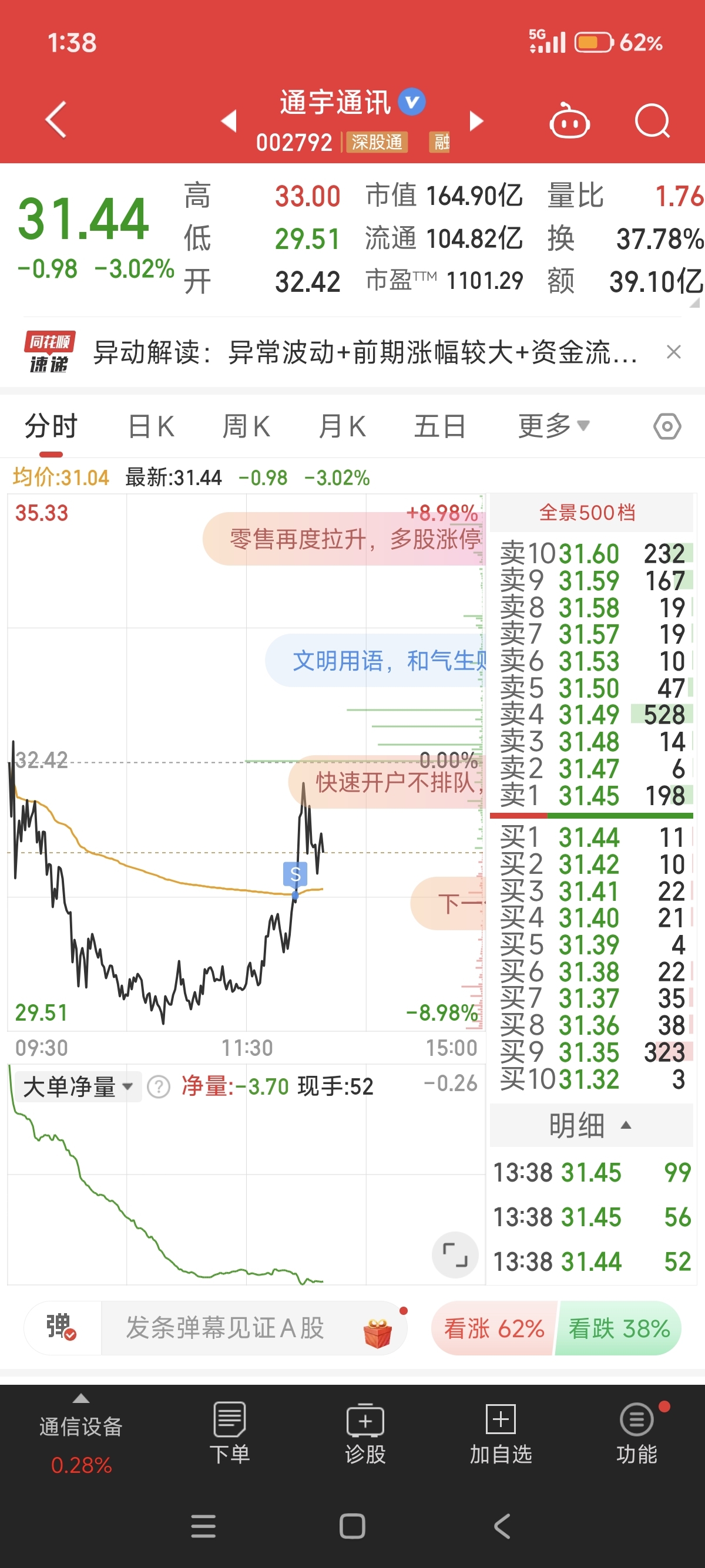 $通宇通讯(SZ002792)$ 在成本附近跑了,29.5买的,昨天集合竞价加仓,开盘没跑,必须清仓,空仓,大家快跑,宁可错过也不能被套