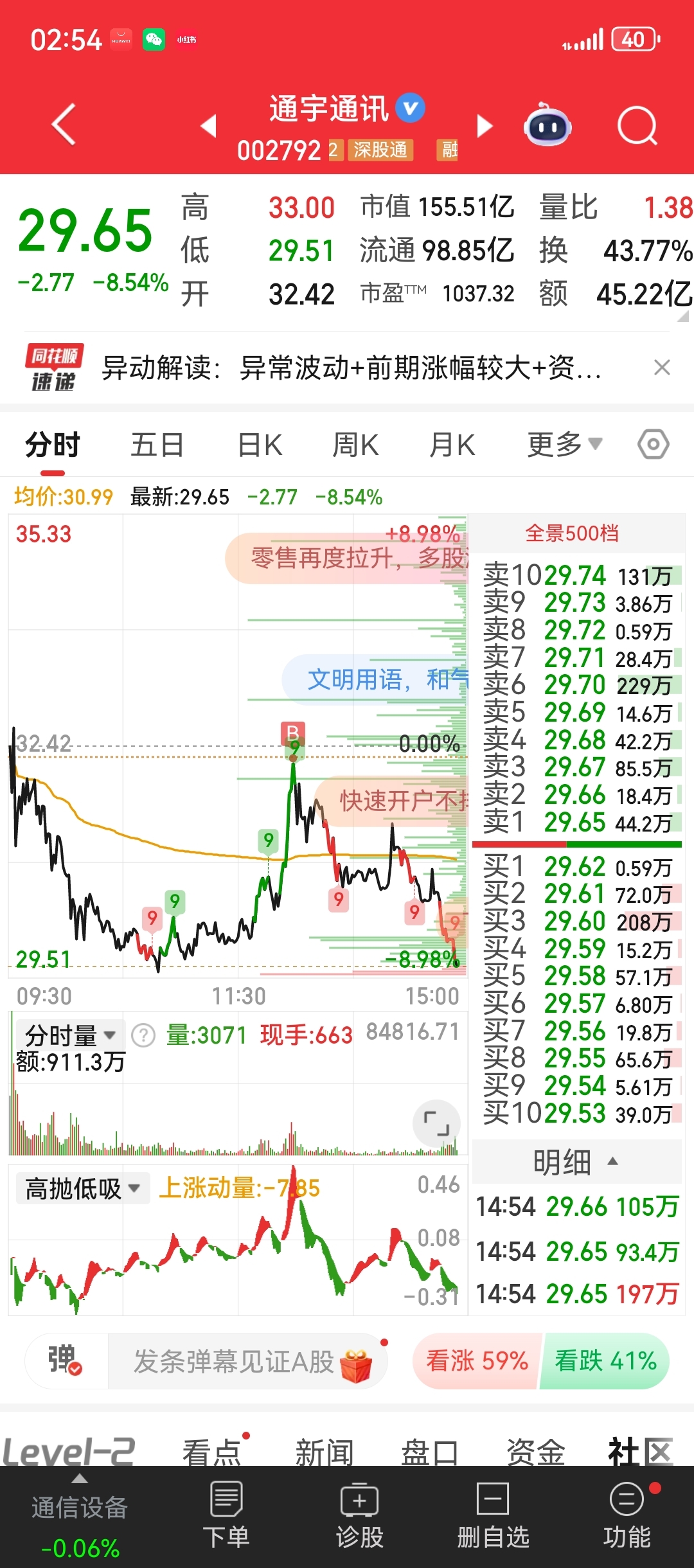 $通宇通讯(SZ002792)$ 真气人呀,日内最高点。直接亏8个点。