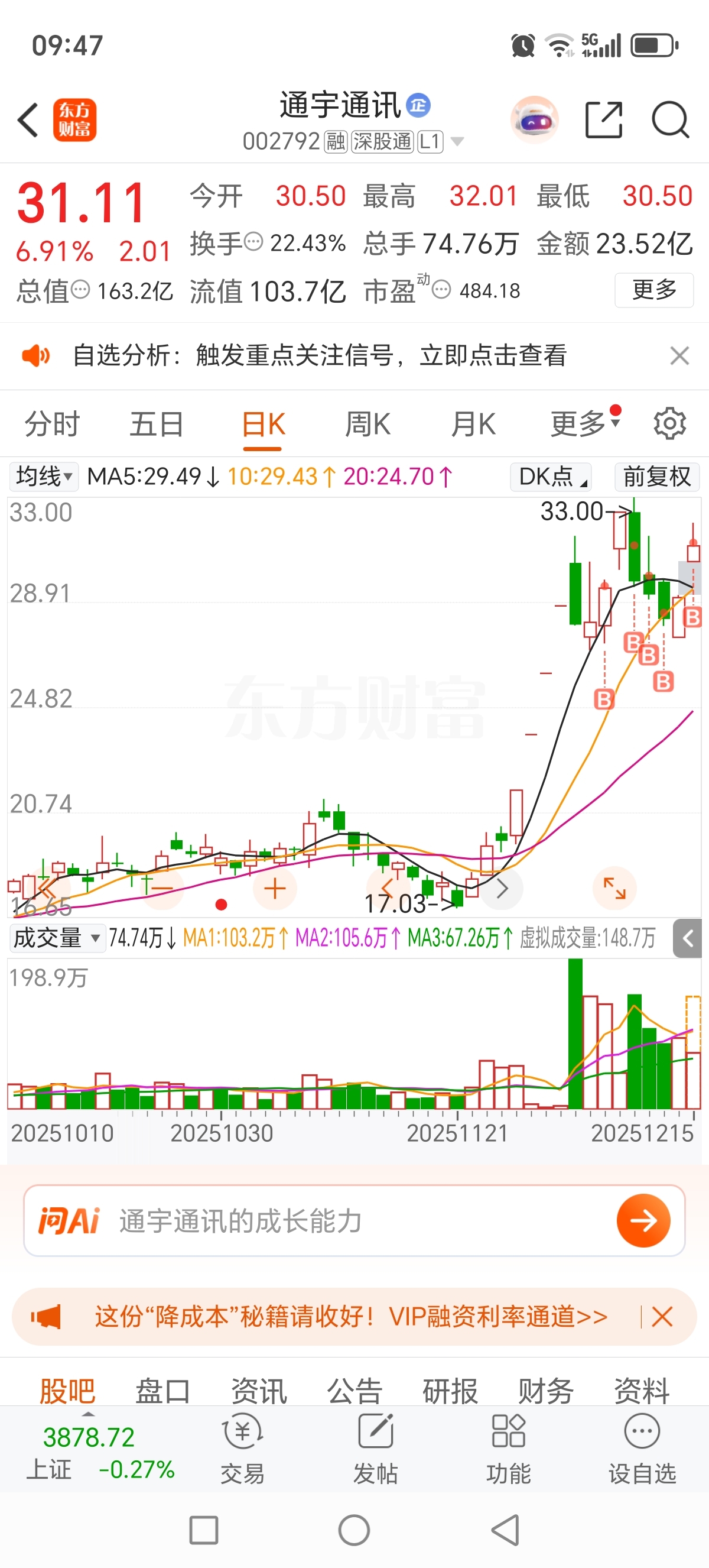 $通宇通讯(SZ002792)$ 没有S只有B冲起来,鲜花为你开