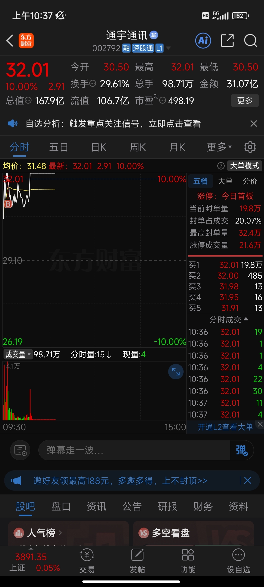 $通宇通讯(SZ002792)$ 你们不敢接的我来接,也是昨晚提前说的竞价可以入的成本比我低
