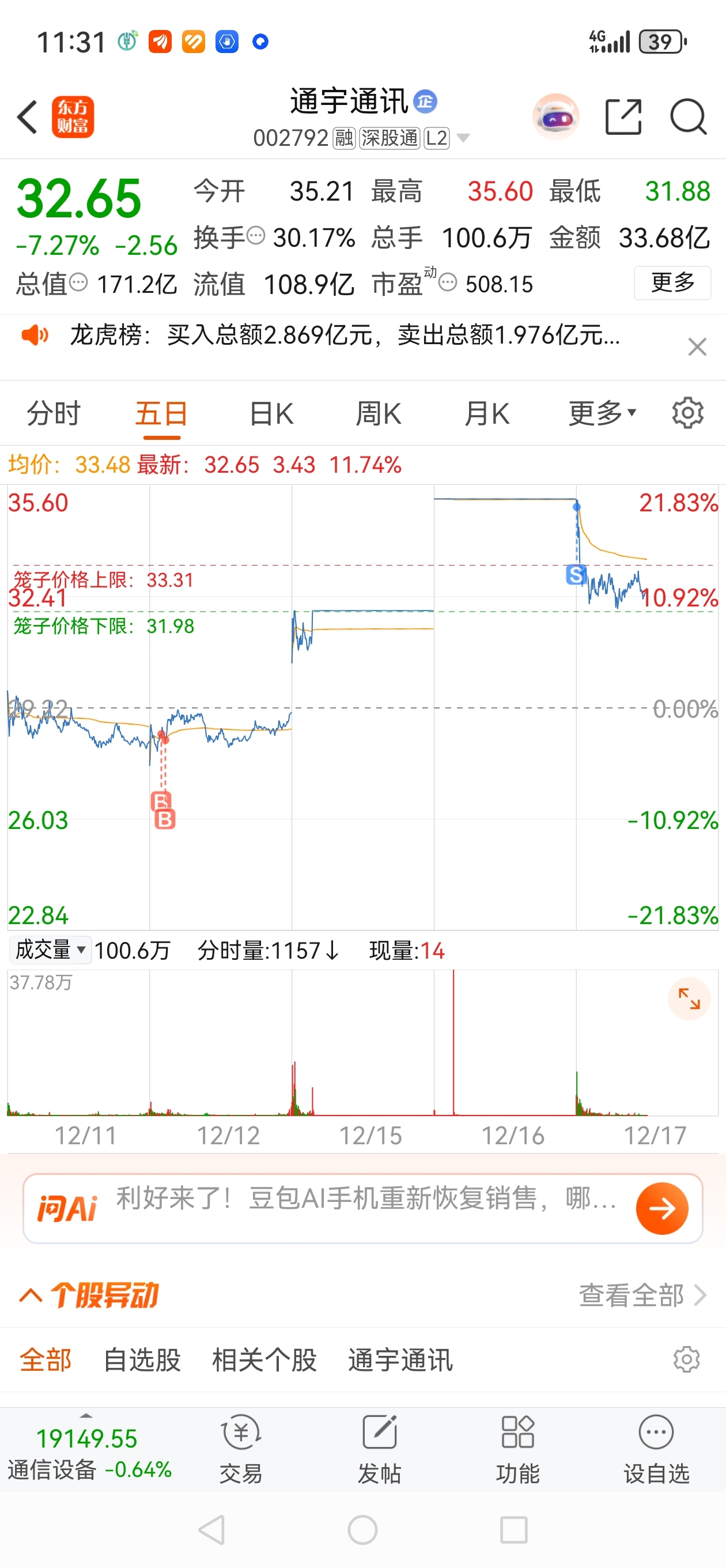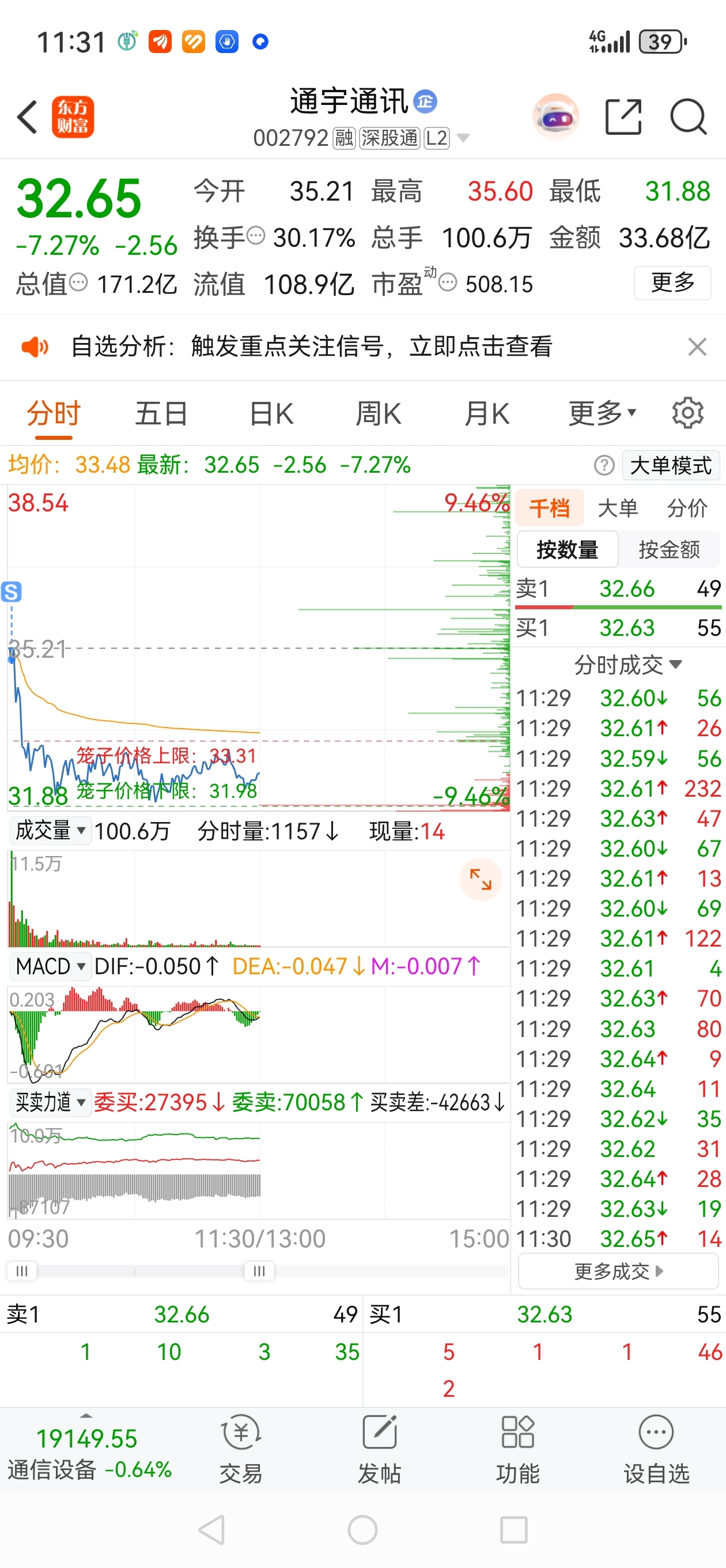 $通宇通讯(SZ002792)$ 无论成败,开盘跑了,没有在最高。