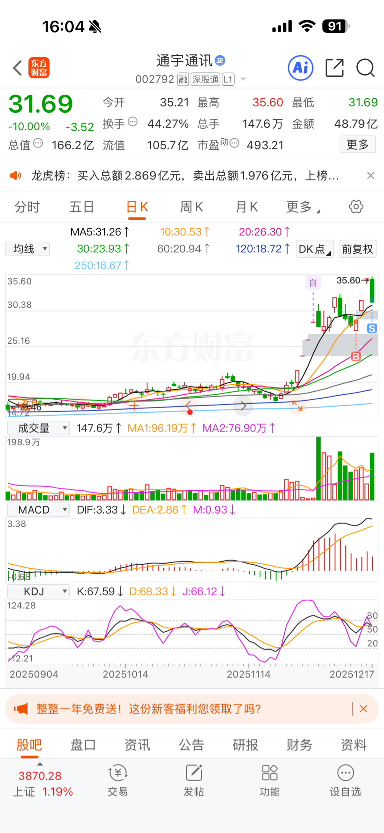 $通宇通讯(SZ002792)$ 没办法,格局了两个板,被主力砸跌了,不得不保点利润走人,本来赚22%,12%离场