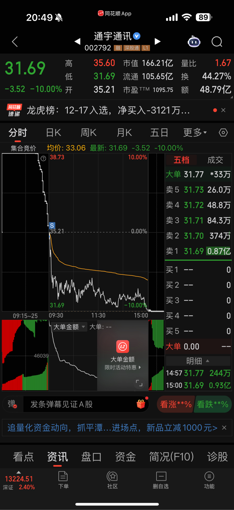 $通宇通讯(SZ002792)$ 今天开盘就砸