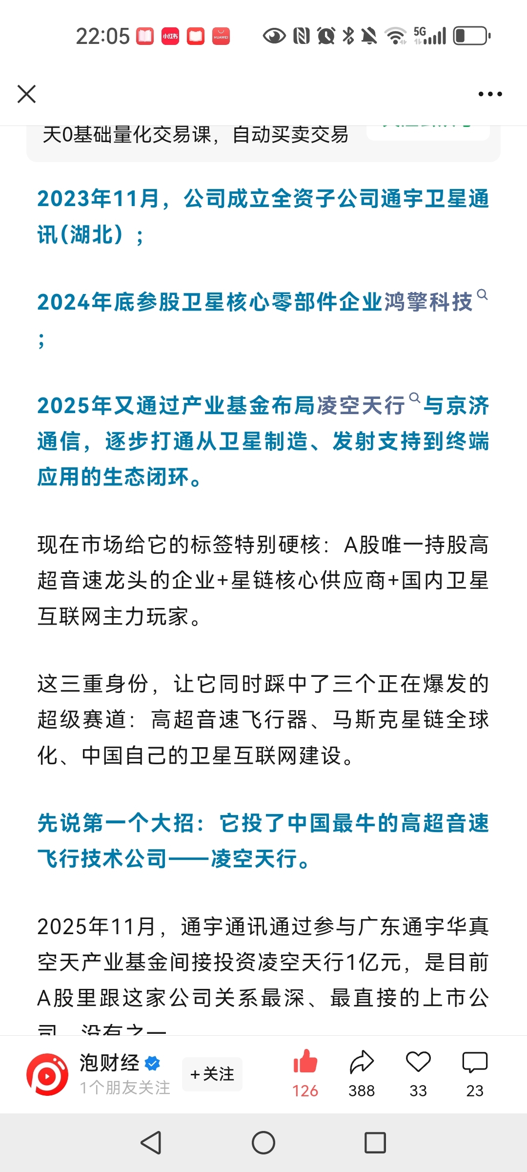 现在市场给它的标签特别硬核:A股唯一持股高超音速龙头的企业+星链核心供应商+国内