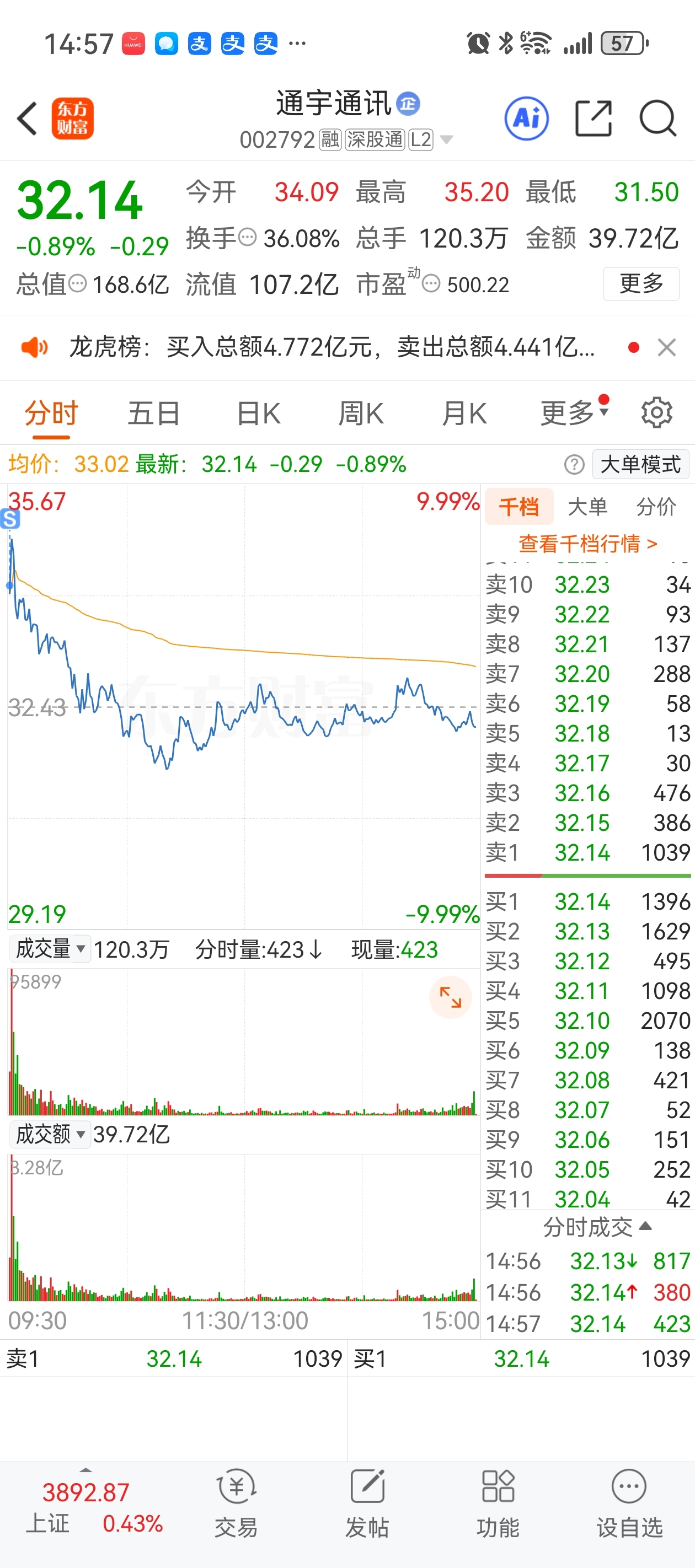 $通宇通讯(SZ002792)$ 今天商业航天开盘不好,通宇抢得太高,竞价后挂单卖了。