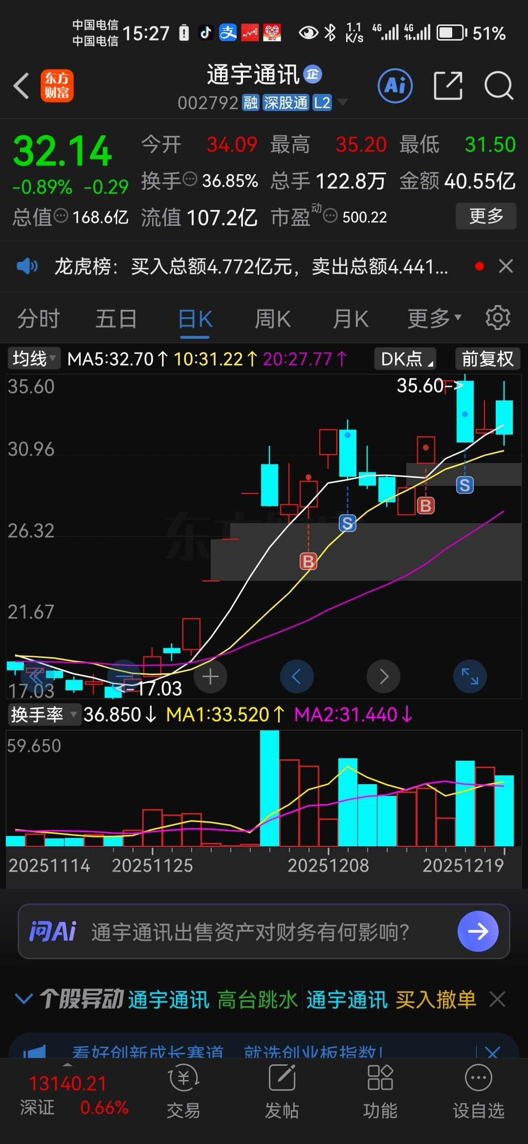 $通宇通讯(SZ002792)$ 凡是涨停封得好好的,次日不但没有溢价而且开盘就直线跌的股,必是凶股,近期可能随时A杀,卖出后千万别轻易抄底。
