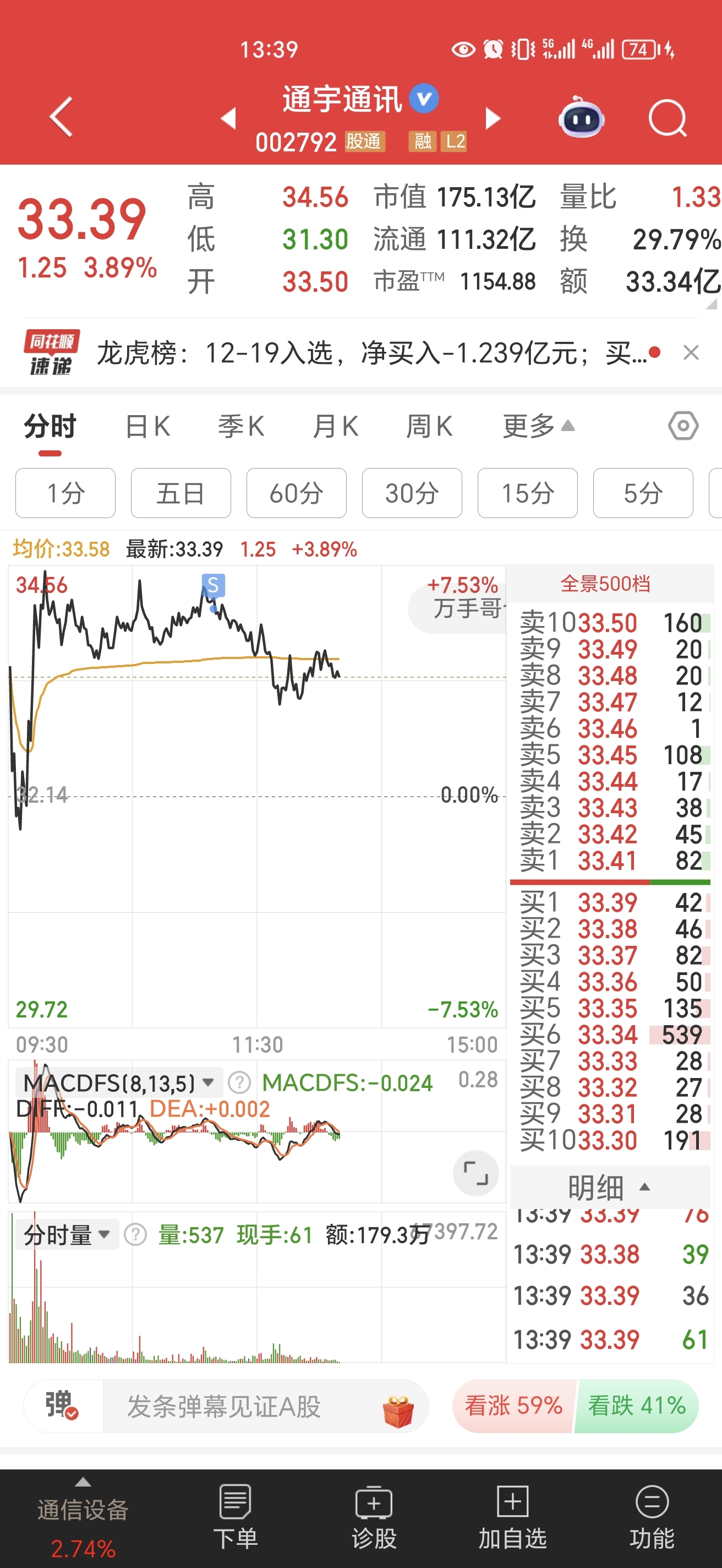 $通宇通讯(SZ002792)$ 小群,再见了,拿不住了