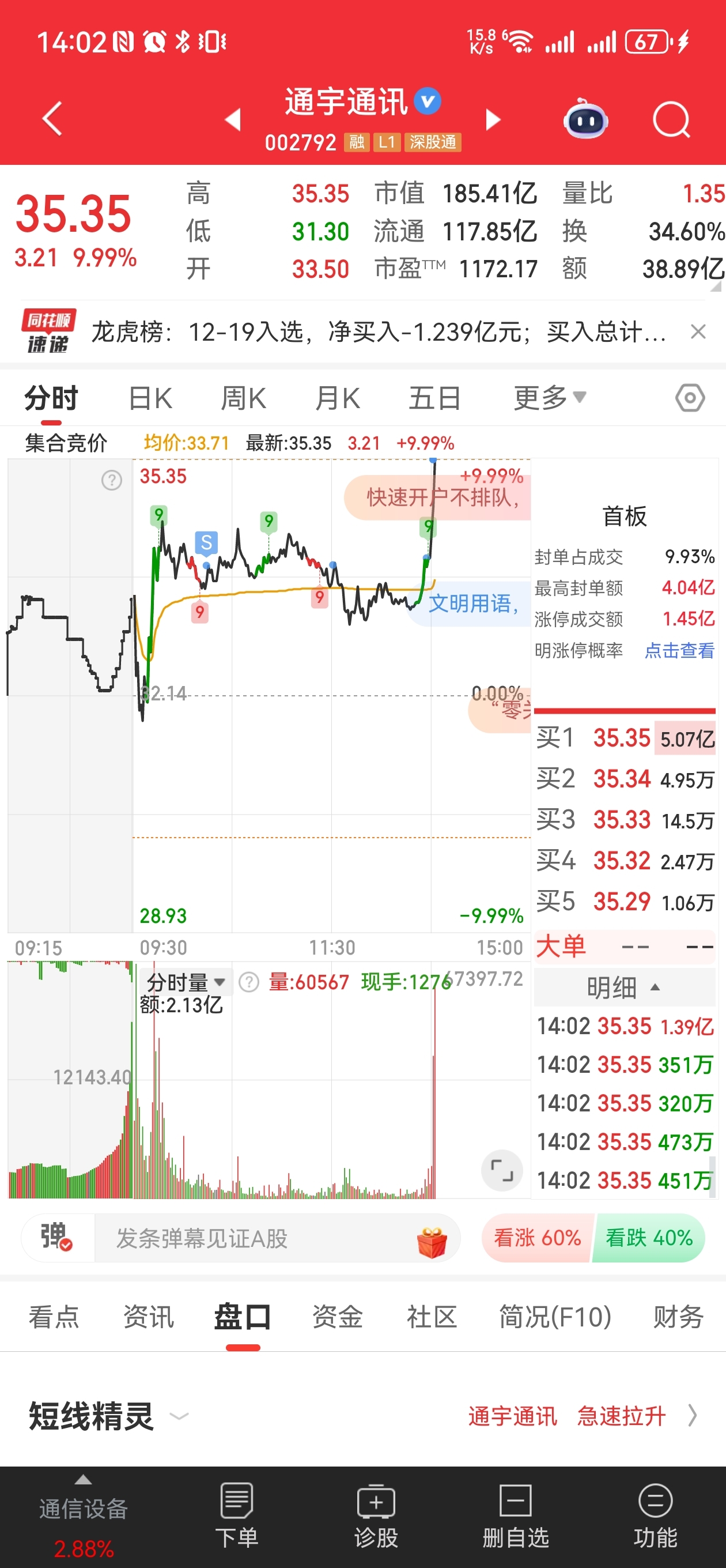 $通宇通讯(SZ002792)$ 感谢群总,大仓位板砸了