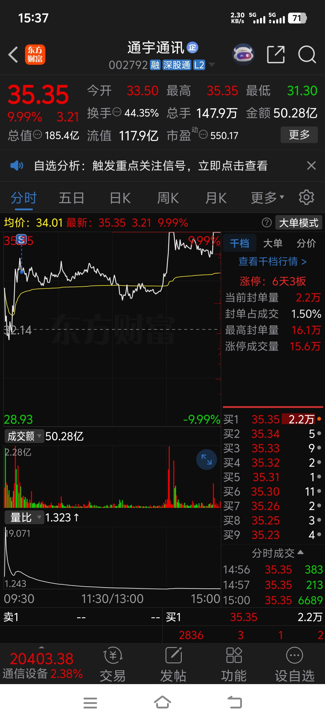 $通宇通讯(SZ002792)$ 留下的发财,卖飞就飞了吧