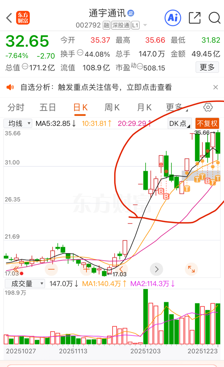 $通宇通讯(SZ002792)$ 连续五个交易日,不是涨停就是跌停,坚持判断平台整理后会有第二波主升。没把握好节奏,由赚钱变成亏钱。