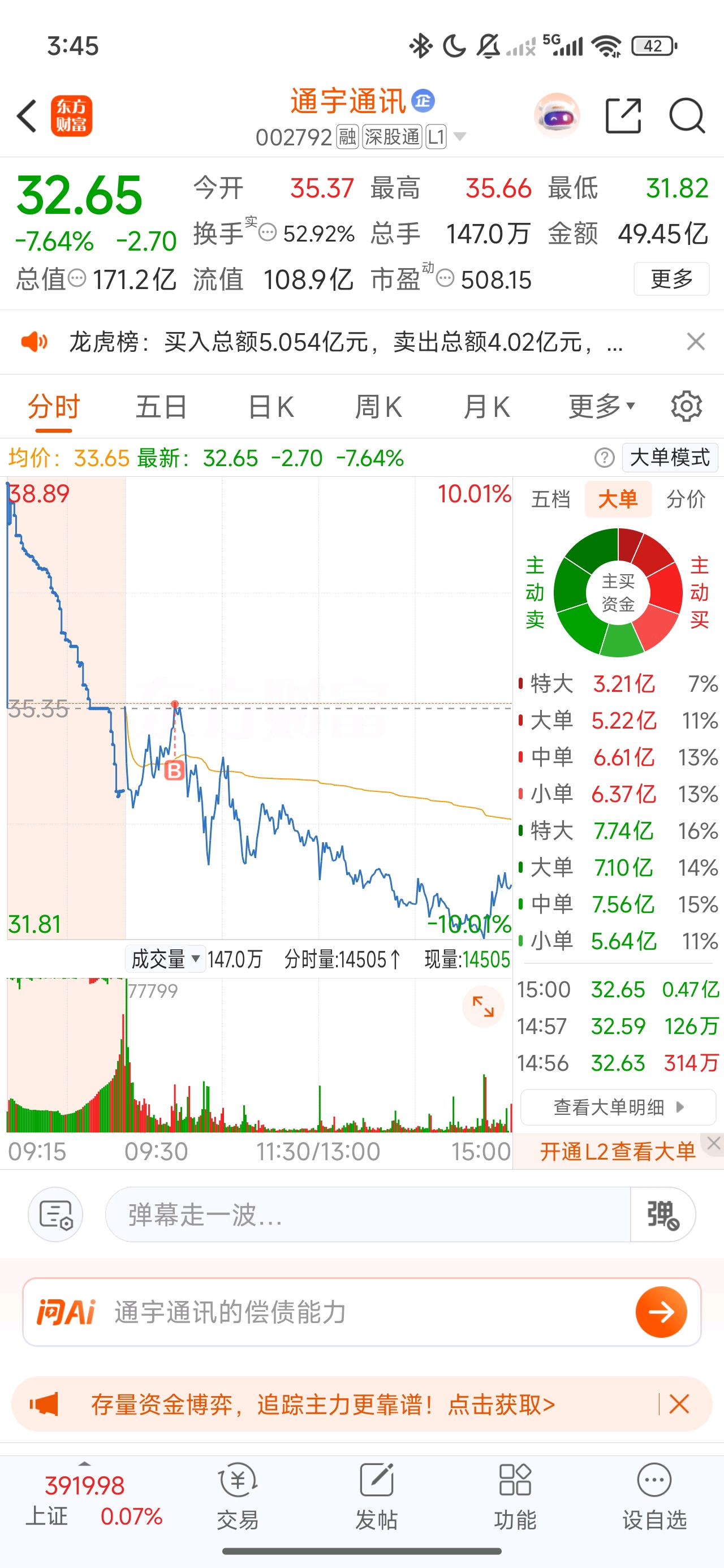 $通宇通讯(SZ002792)$ 怕吗?不怕