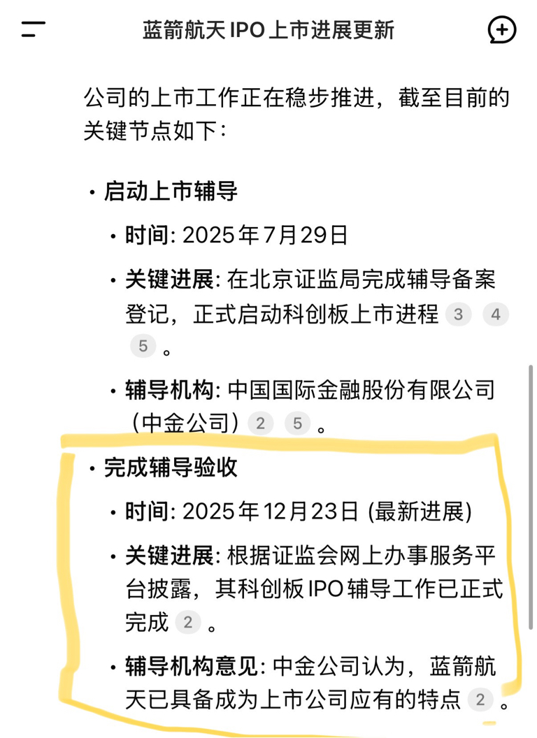 最新消息,12月23号蓝箭航天已经正式完成IPO上市辅导工作。