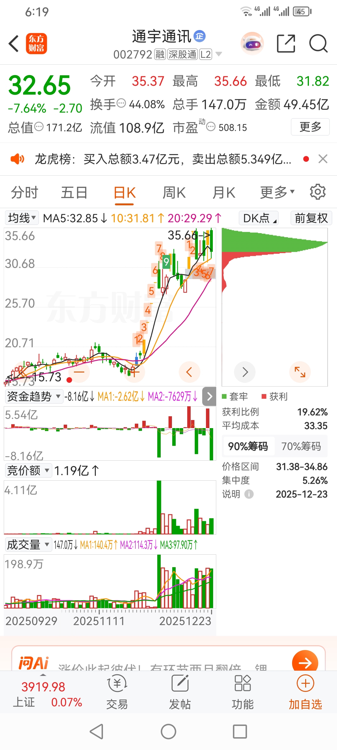 $通宇通讯(SZ002792)$ 今天减仓一半,大跌低买。#炒股日记# #强势机会#