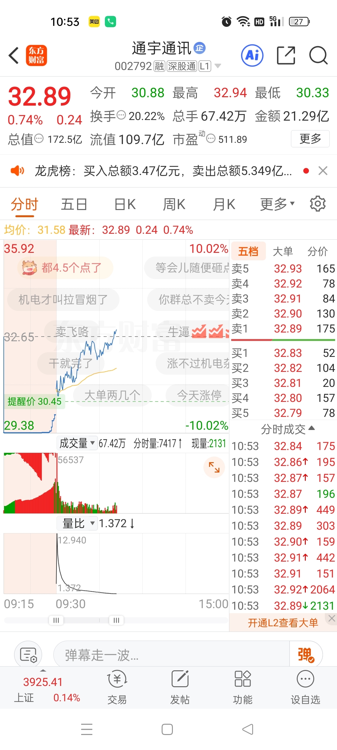 $通宇通讯(SZ002792)$ 我擦怎么看的票,没买的就强
