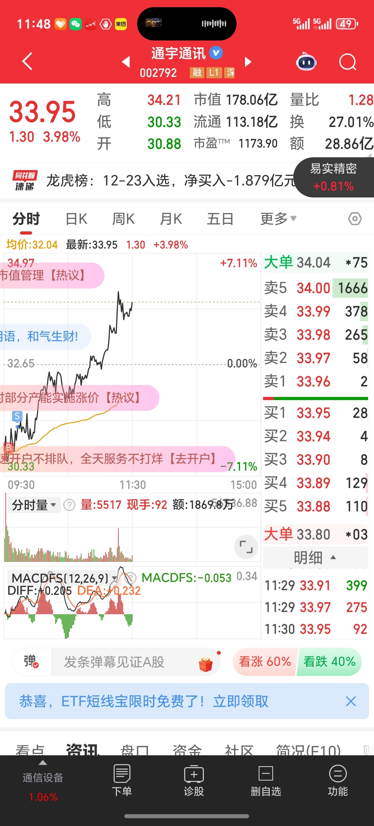 $通宇通讯(SZ002792)$ 今天T了个寂寞