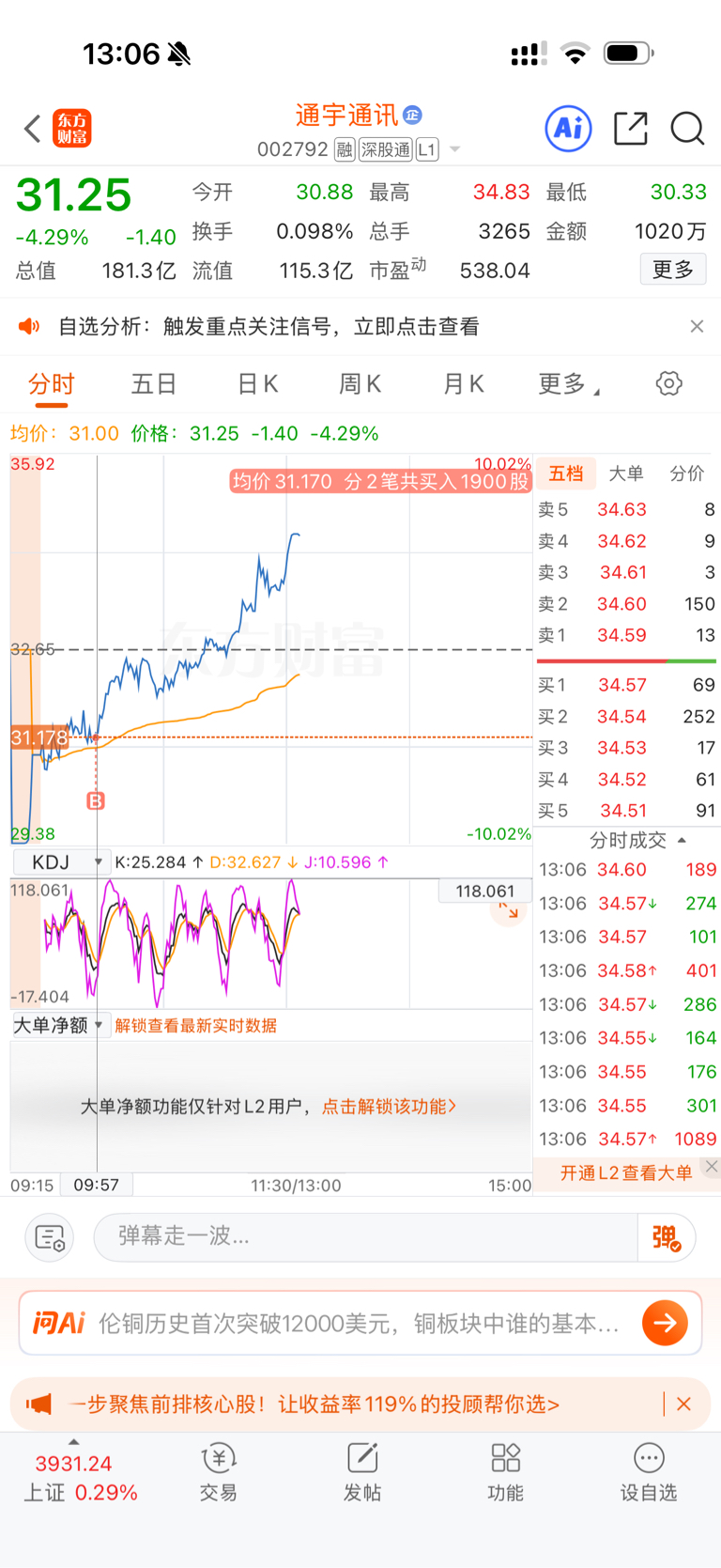 $通宇通讯(SZ002792)$ 什么水平