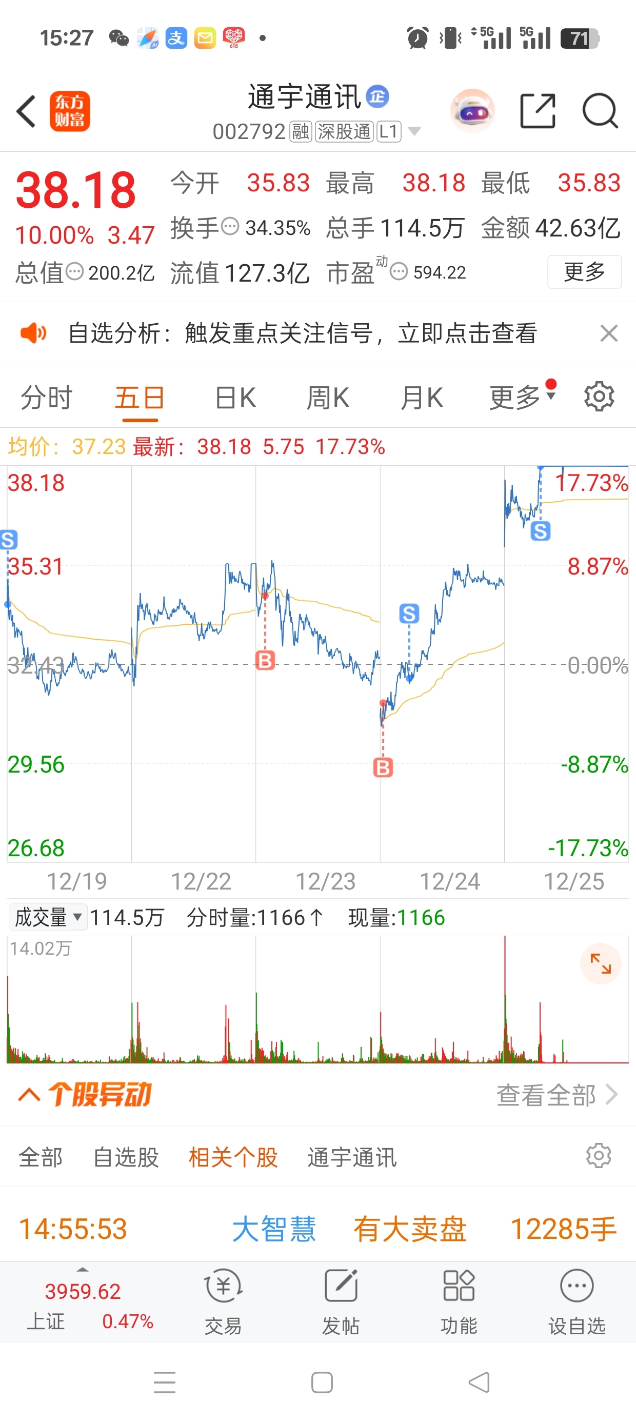 今天虽然卖飞了,但依然感谢通宇给的利润,谢谢