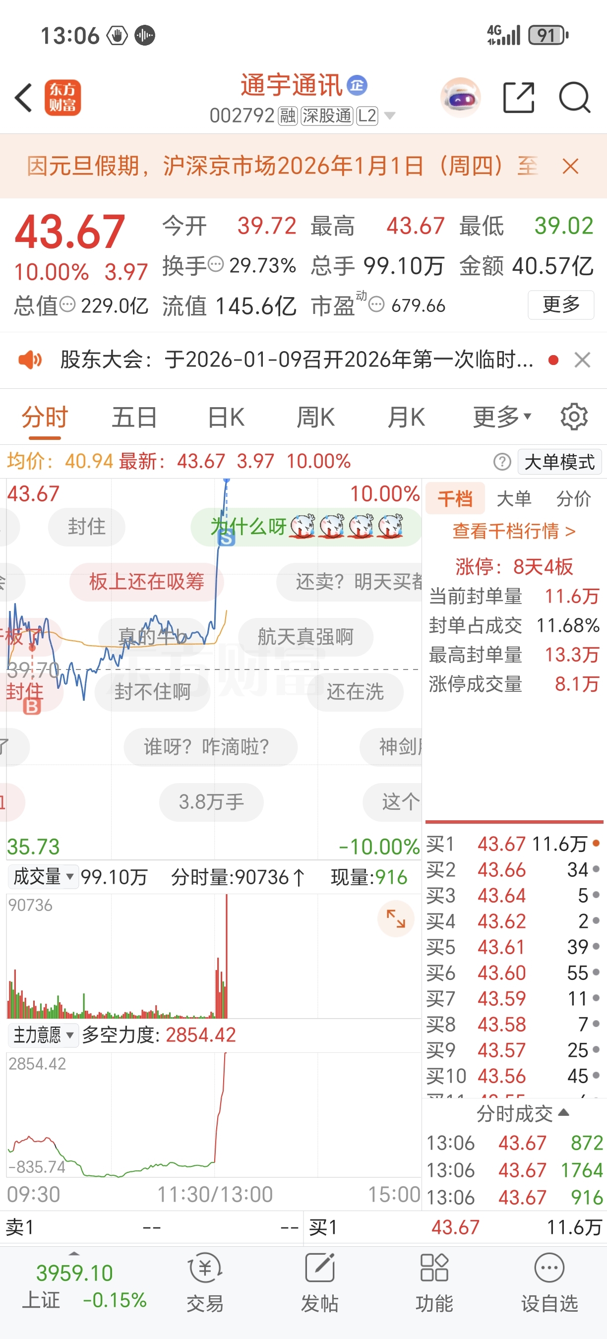 $通宇通讯(SZ002792)$ 不管下周一怎么样,做T总归是对的,保证收益,降低风险,2026再战!