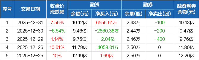 通宇通讯:融资净买入6556.61万元,融资余额10.12亿元(12-31)