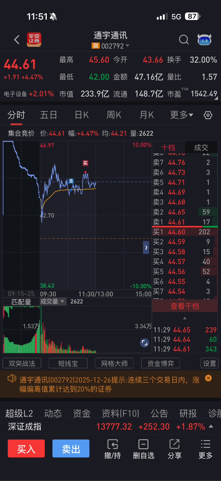 $通宇通讯(SZ002792)$ 我c 还以为航天板块全部起来了又高位接回来