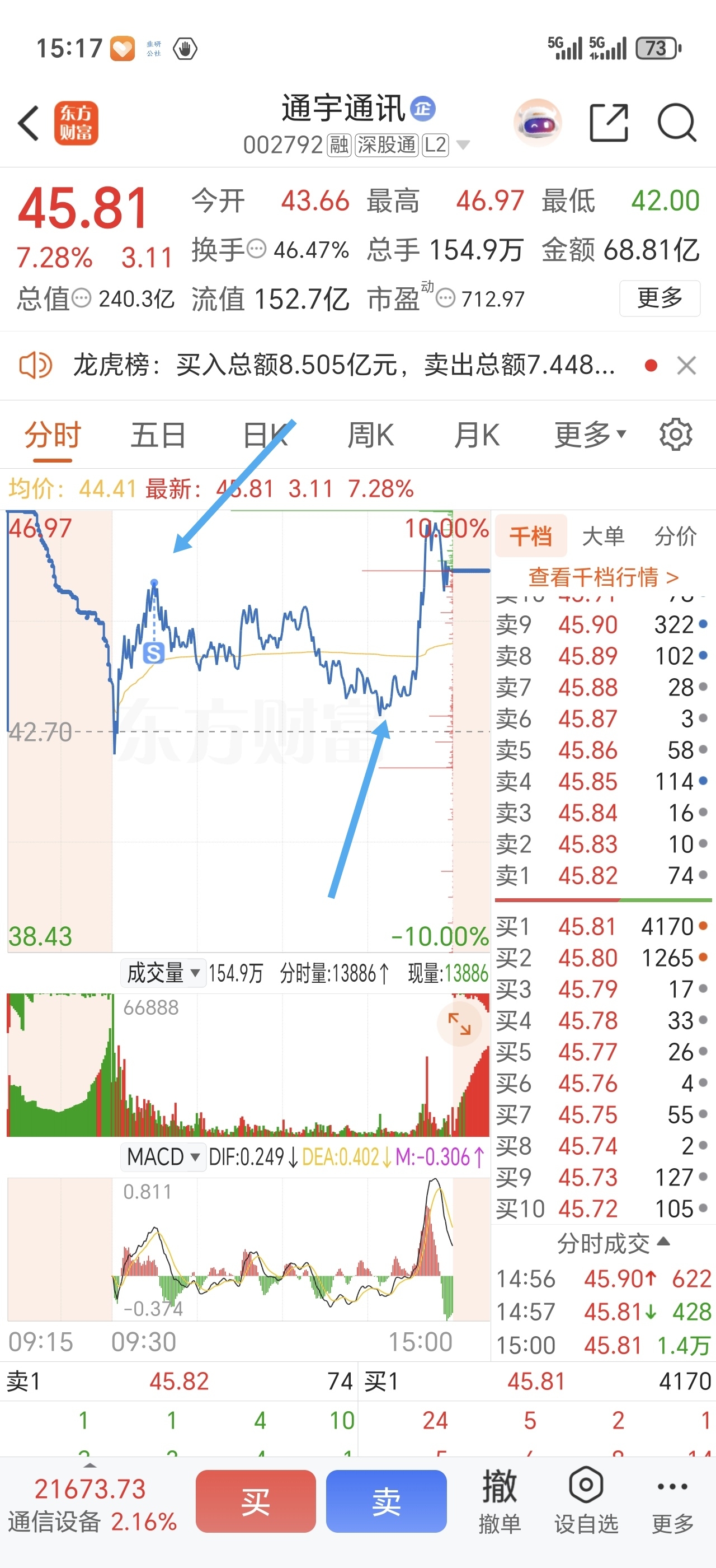 卖飞卖飞。早上卖在最高点。下午14:10分,航天机电启动,深水拉升,快速拉板。这