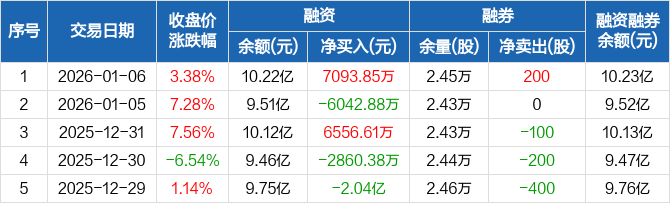 通宇通讯:融资净买入7093.85万元,融资余额10.22亿元(01-06)