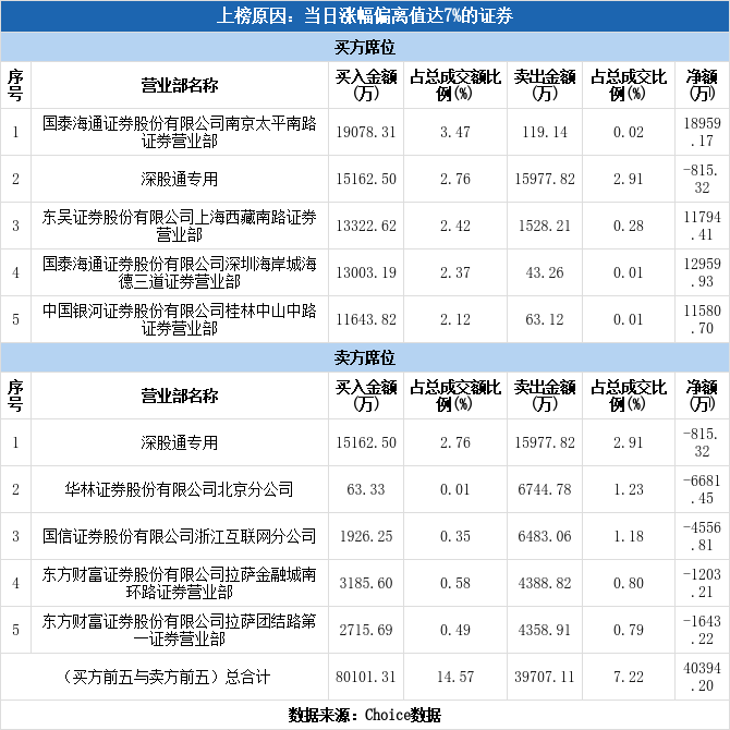 深股通现身龙虎榜,通宇通讯涨停(01-07)