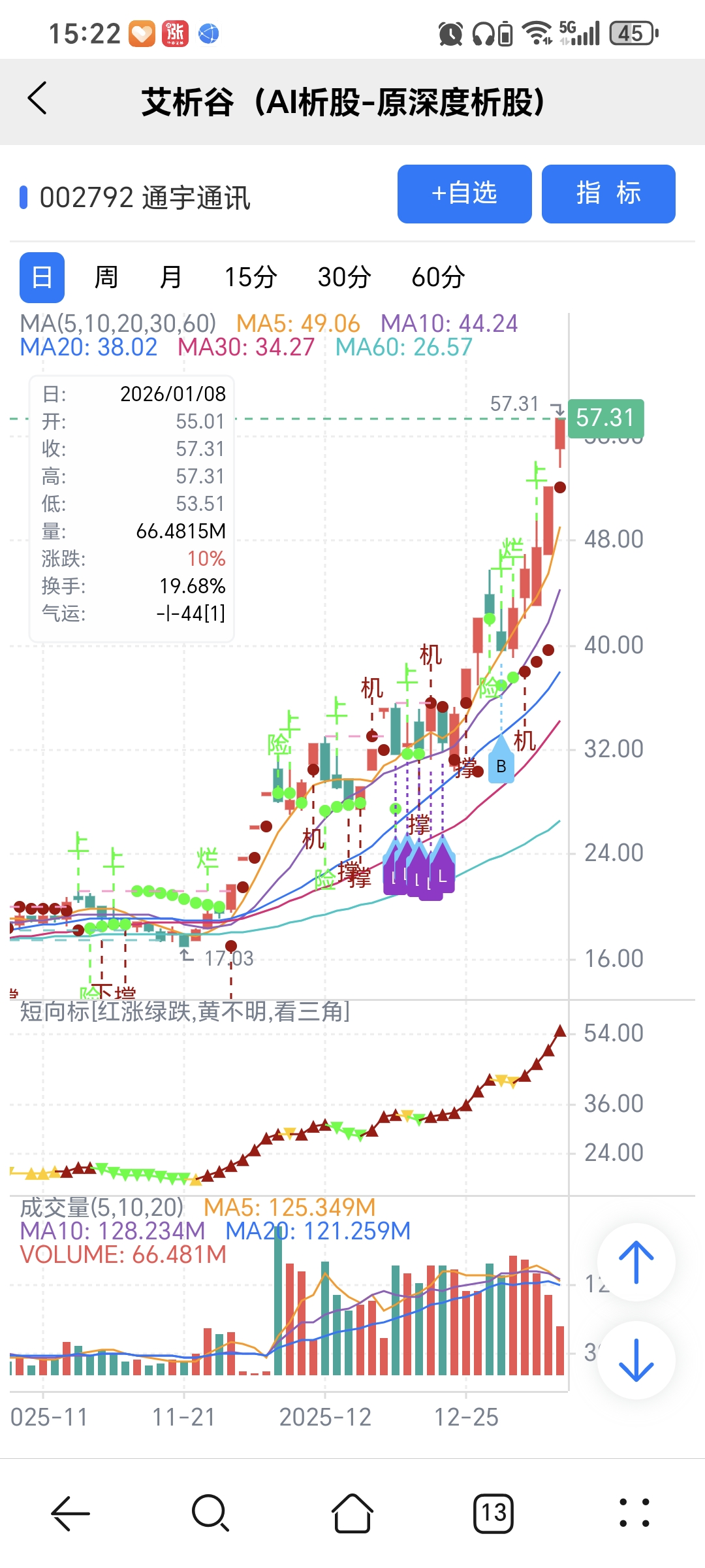 风险:股价下穿艾短波或红变绿、绿字。