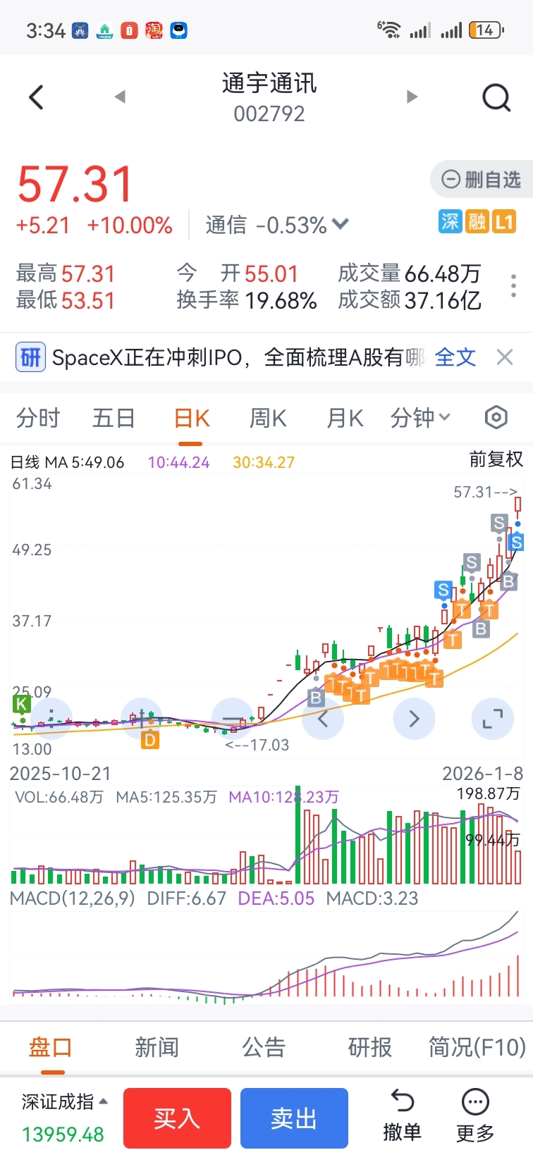$通宇通讯(SZ002792)$ 兄弟们,昨天早盘接近涨停价先清了,因为我知道今天要控异动,5个点的空间满足不了我,我去乾照和昊志了,今天控制的住我会再回来,在里面的兄弟今天悠着点,下午收盘前几分钟很关键,如果今天有水下的机会也可以买,尾盘绝对是要拉到5.6个点左右的,就算控制不住,下周一也不会亏什么