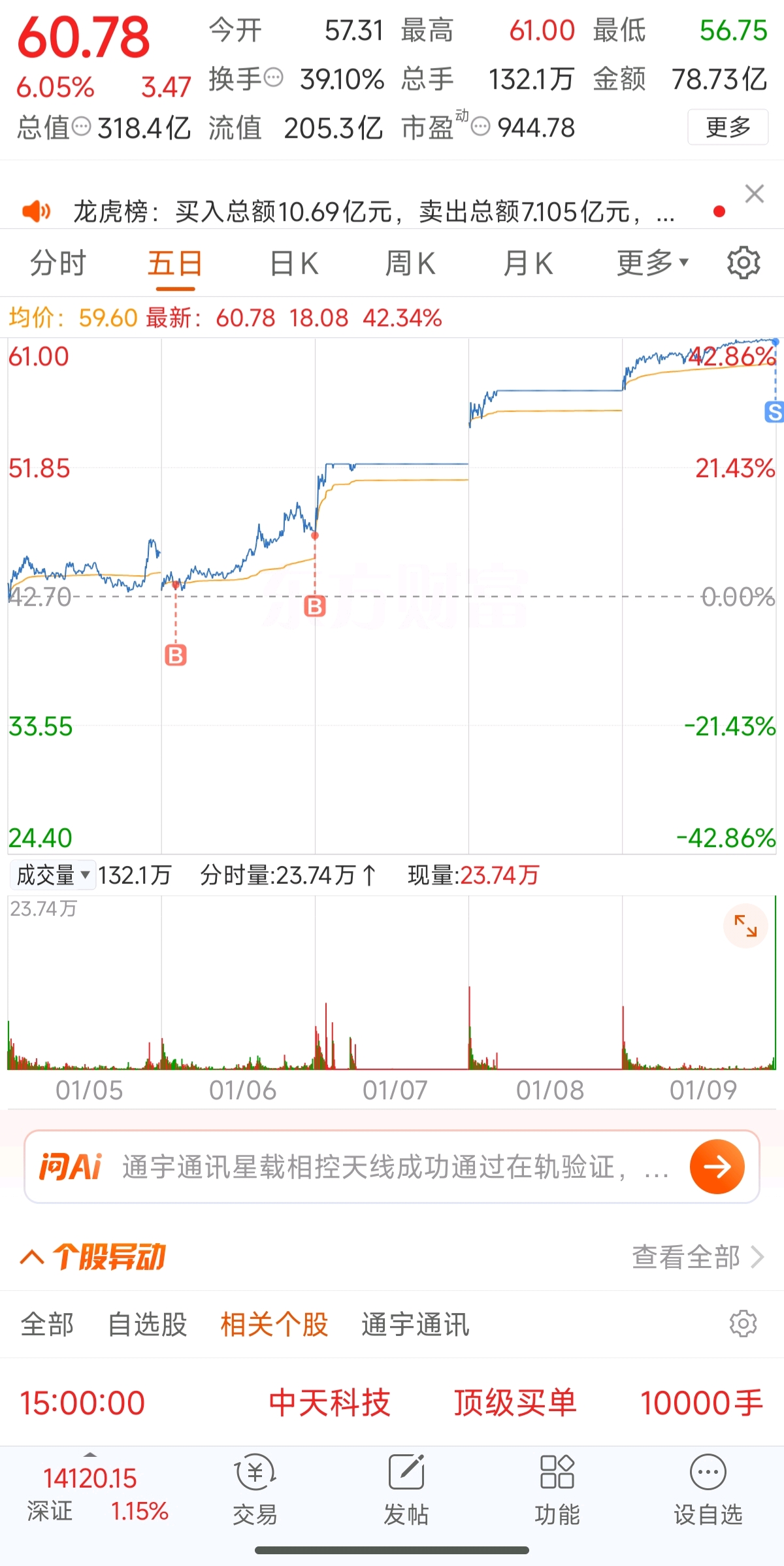 $通宇通讯(SZ002792)$ 我要起诉开盘啦,明明写的6.05异动,我挂的60.78卖出去了,收盘又显示6.06