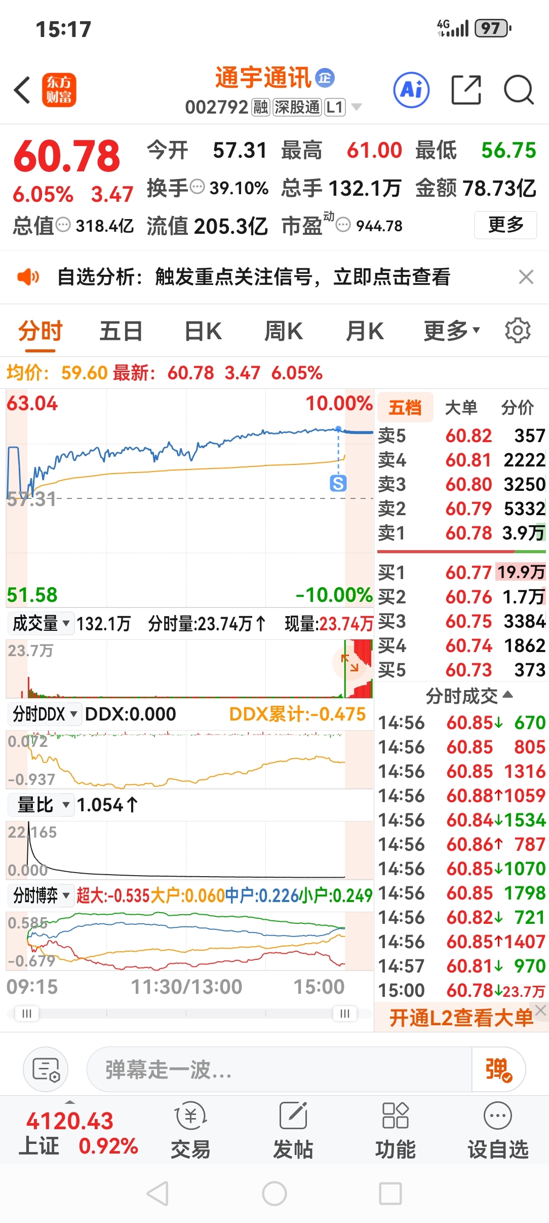为了躲异动,搞得精神紧张。担心压不住,收盘前以60.97出了。周一再接回来吧