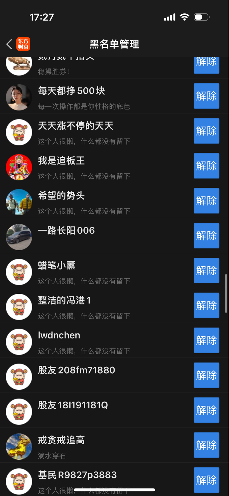 我从29.4一路拿到了现在。是我的黑名单支撑我拿了下来,有一周吧里散户少的可怜,