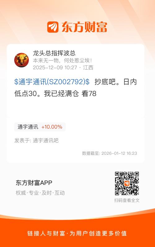 $通宇通讯(SZ002792)$  抄底吧。日内低点30。我已经满仓 看78