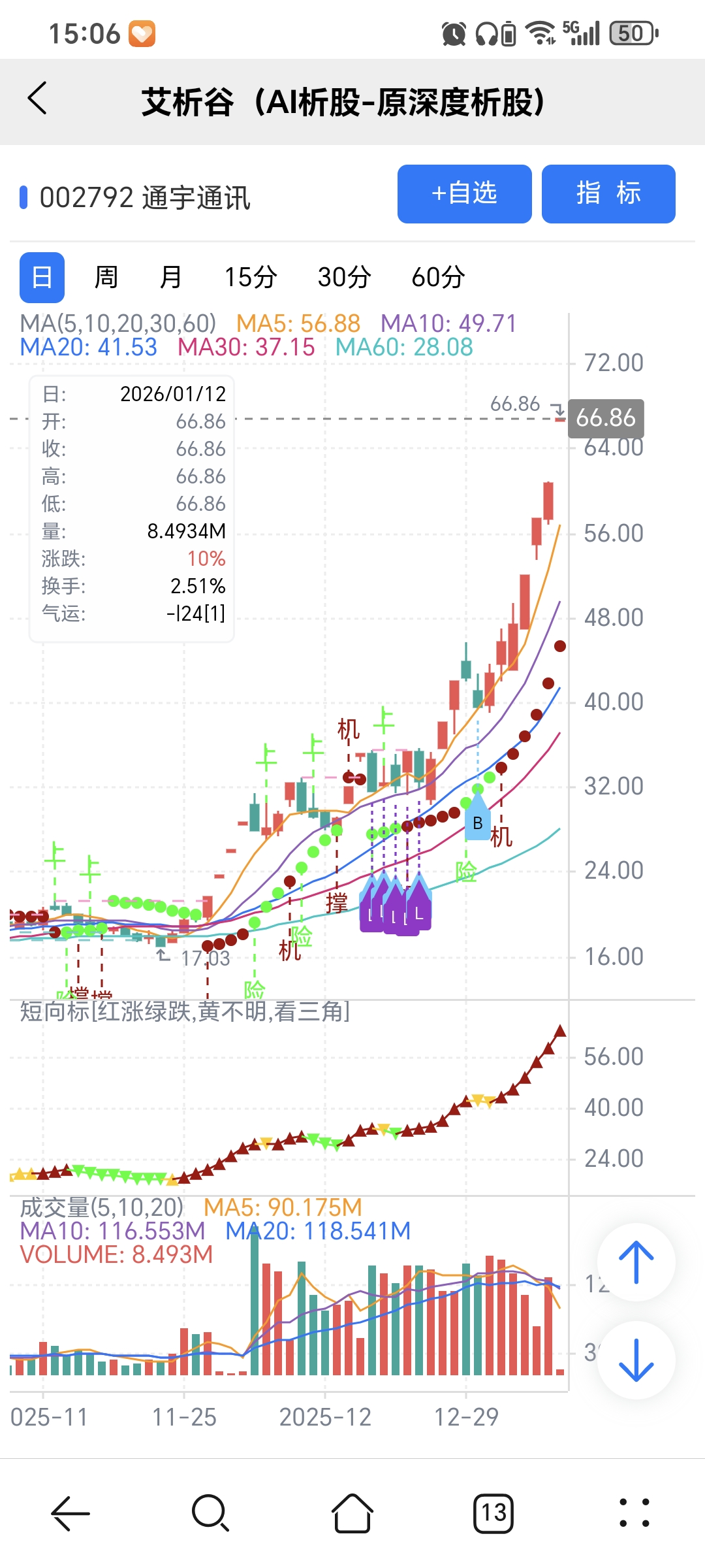 风险:股价下穿艾短波或红变绿、绿字。
