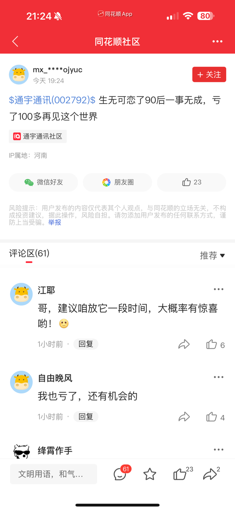 温馨提示: 1.根据《证券法》规定,禁止编造、传播虚假信息或者误导性信息,扰乱证券市场;2.用户在本社区发表的所有资料、言论等仅代表个人观点,与本网站立场无关,不对您构成任何投资建议。用户应基于自己的独立判断,自行决定证券投资并承担相应风险。《东方财富社区管理规定》