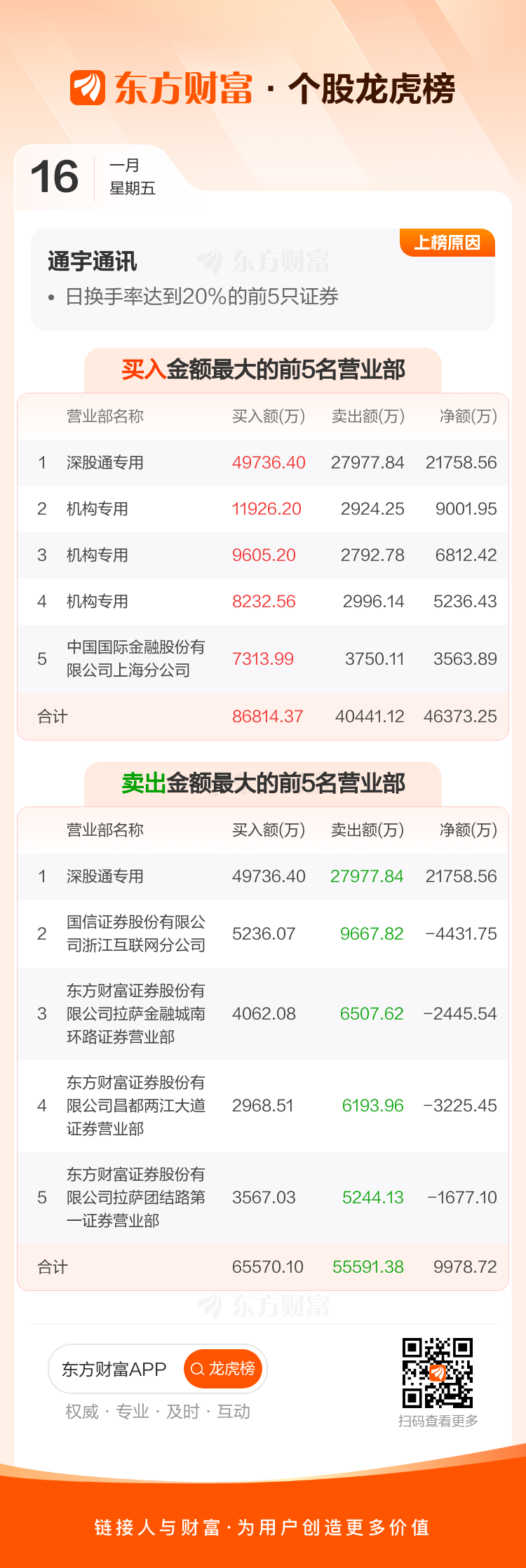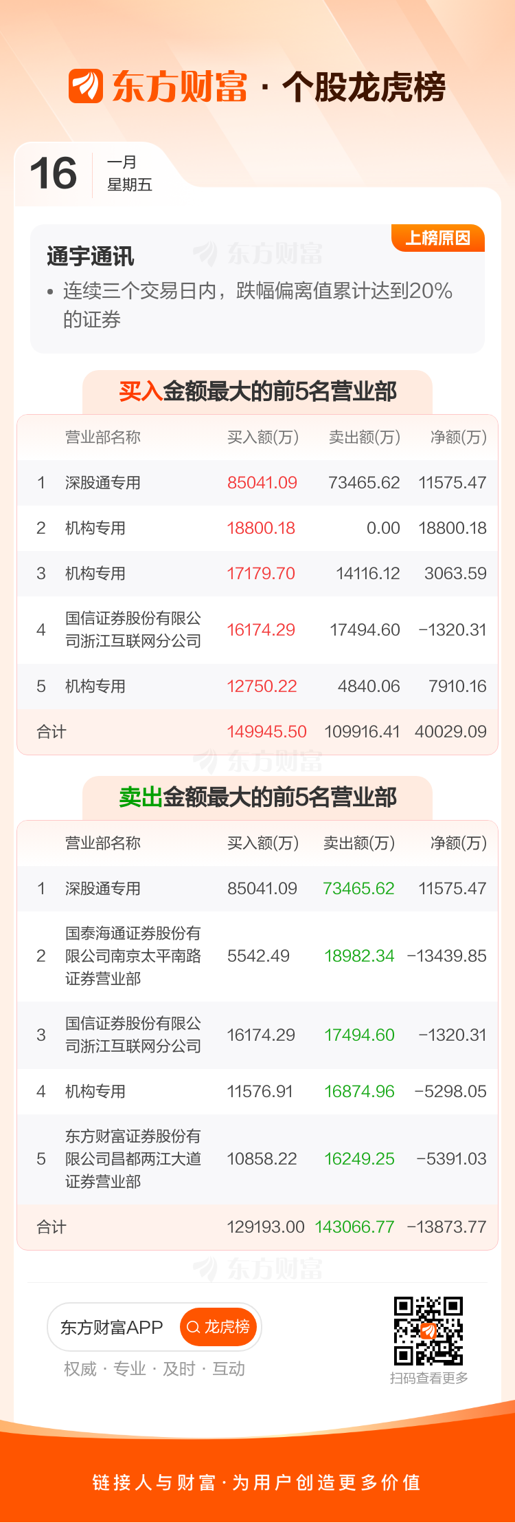 通宇通讯(002792)龙虎榜数据(01-16)