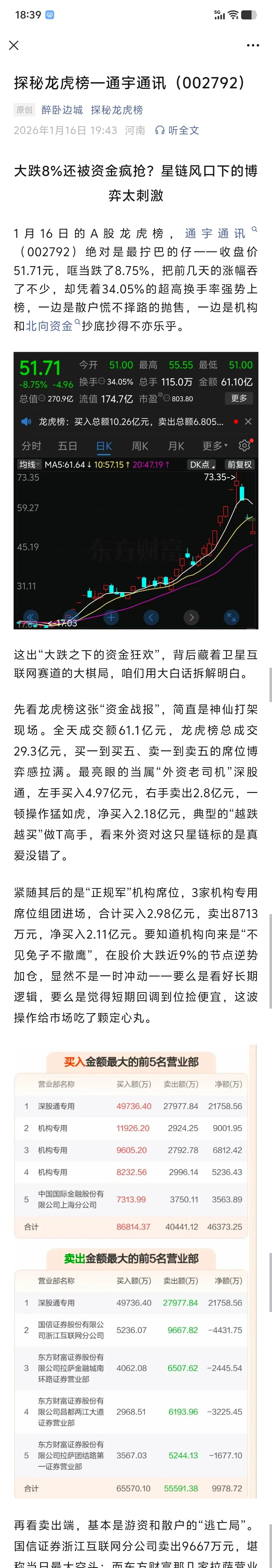 1月16日的A股龙虎榜,通宇通讯(002792)绝对是最拧巴的仔——收盘价51.