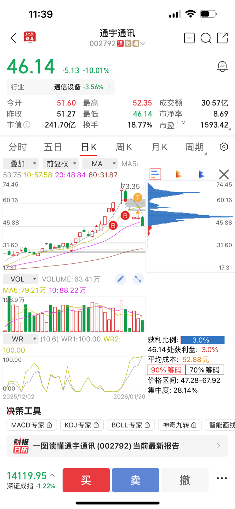$通宇通讯(SZ002792)$ 从小仓位15万挣十八个点,73撤单没卖,第一个跌停又补仓30万,已经亏麻了,现在这个票亏25个点,南兴亏25个点,四五天亏20多万了,今天看着跌停都无力操作了,已经不知道何去何从了…还有希望么?