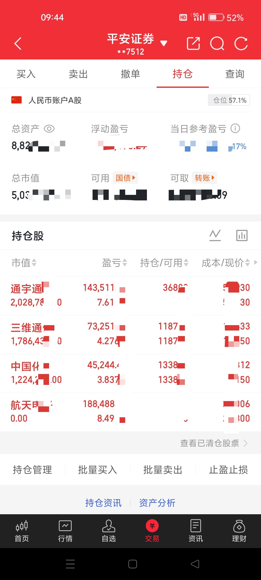 持仓:$三维通信(SZ002115)$ ,$中国化学(SH601117)$