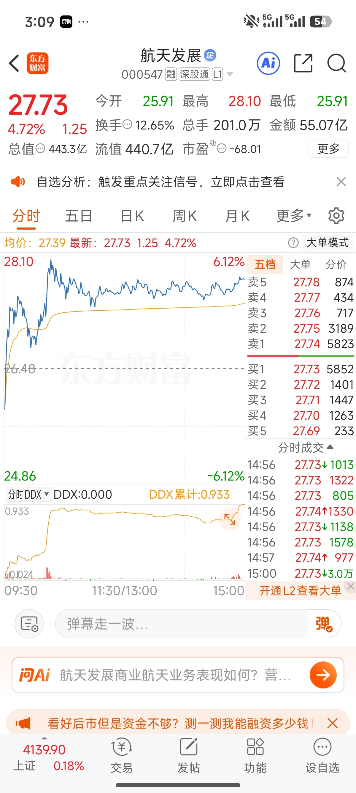 看这走势就好像拿着尺子走的一样,这明显的压着啊,我想说所有商业航天都一个样子,明