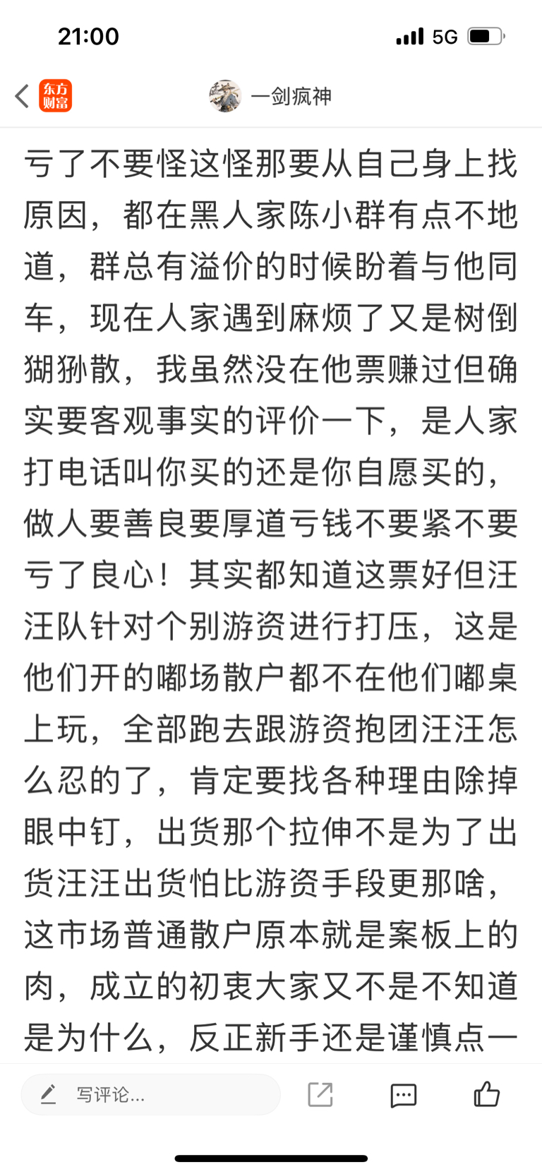 温馨提示: 1.根据《证券法》规定,禁止编造、传播虚假信息或者误导性信息,扰乱证券市场;2.用户在本社区发表的所有资料、言论等仅代表个人观点,与本网站立场无关,不对您构成任何投资建议。用户应基于自己的独立判断,自行决定证券投资并承担相应风险。《东方财富社区管理规定》