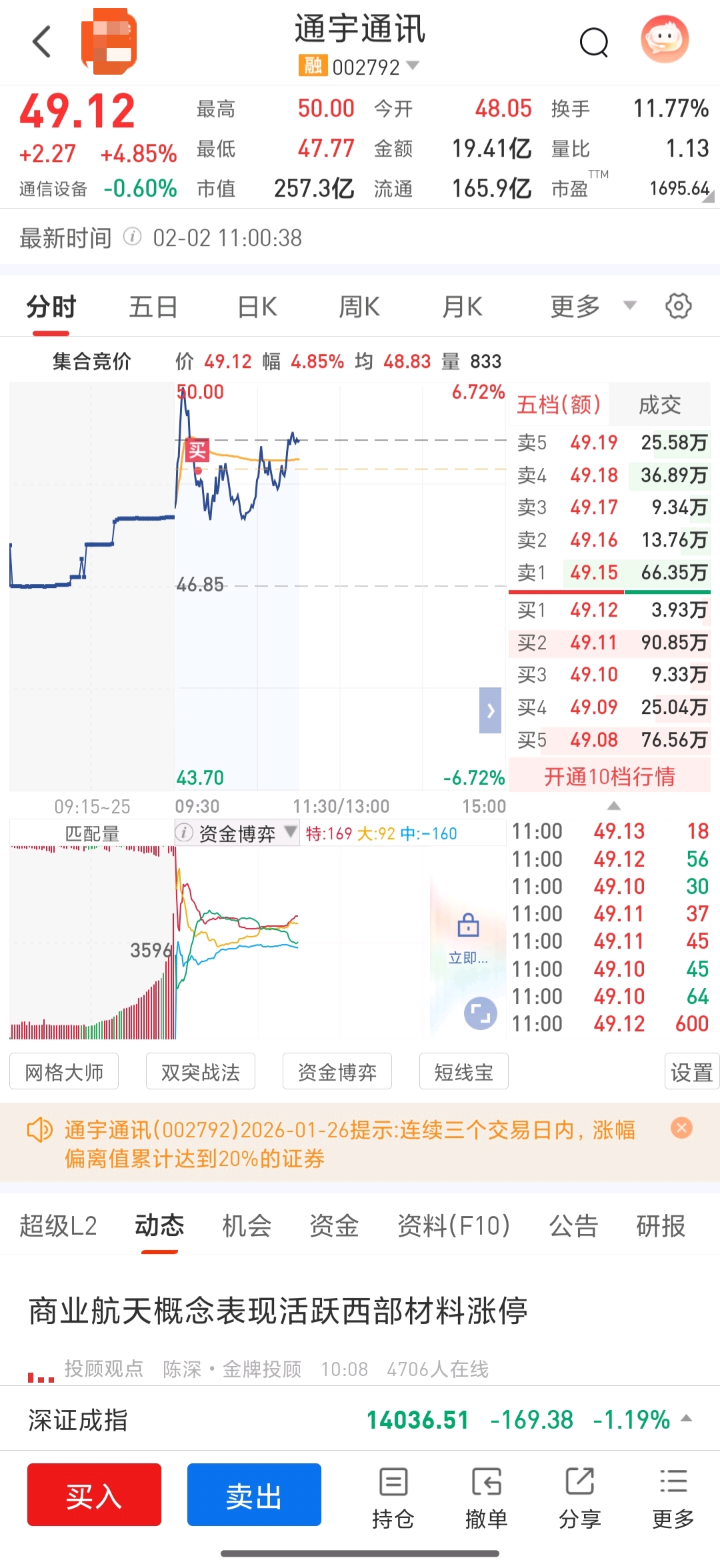 $通宇通讯(SZ002792)$ 看好航天继续修复,这波龙头是西部材料,目前已经新高,你作为跟他一波的四小龙看好你的后市,就是买点不太好,买高了!