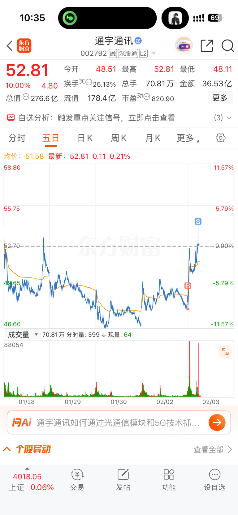 $通宇通讯(SZ002792)$ 最完美的一次短线套利 感谢